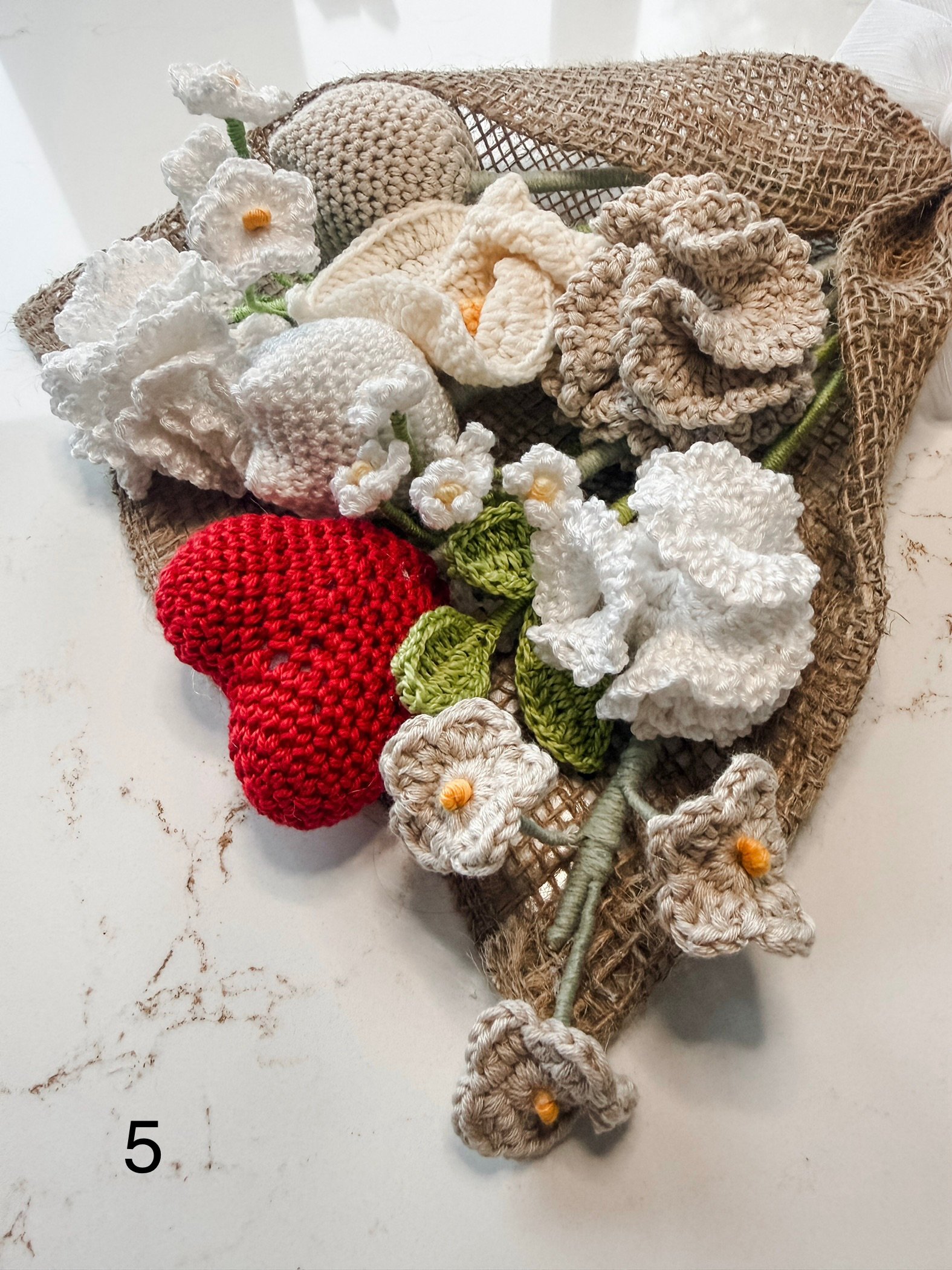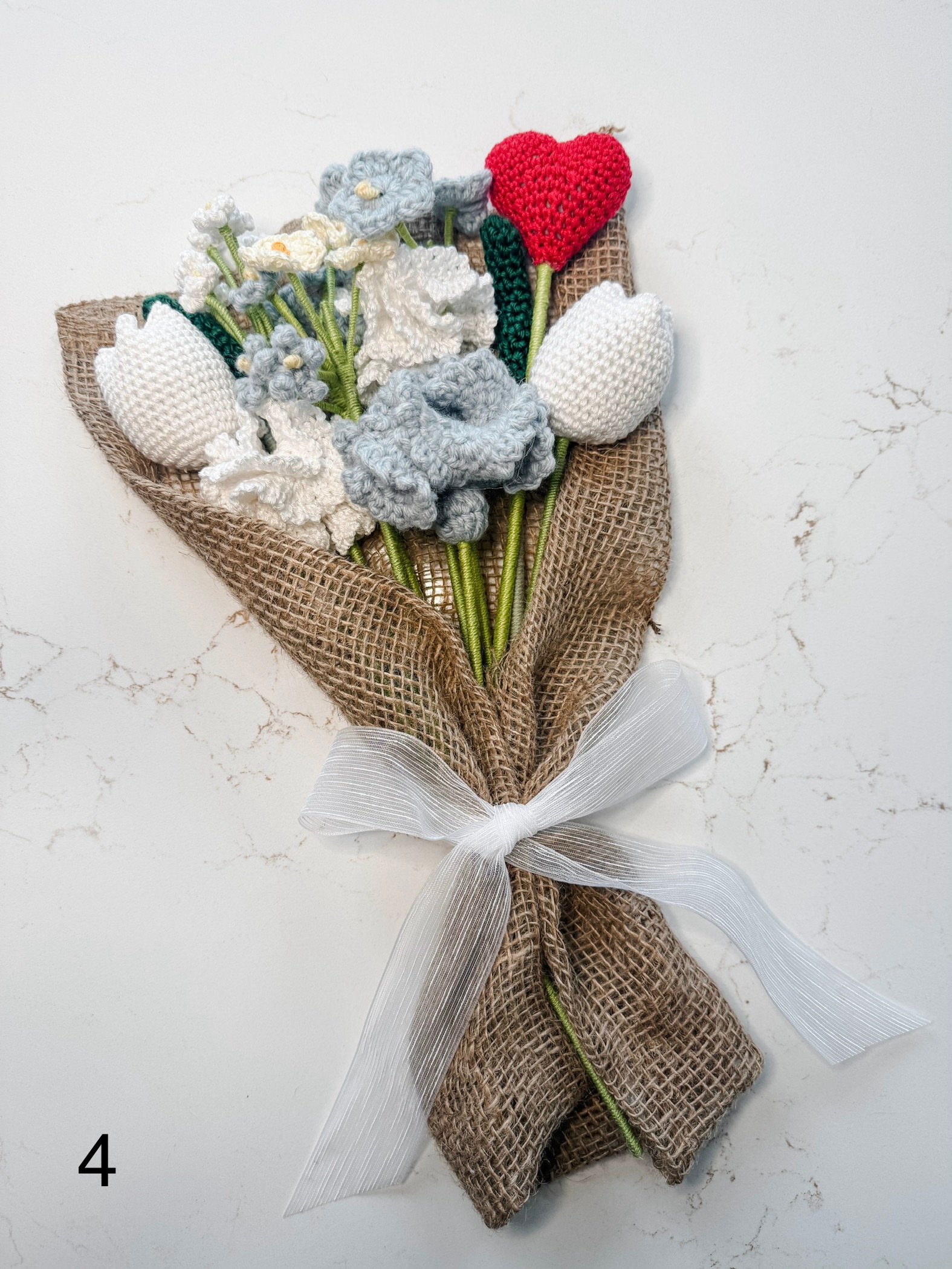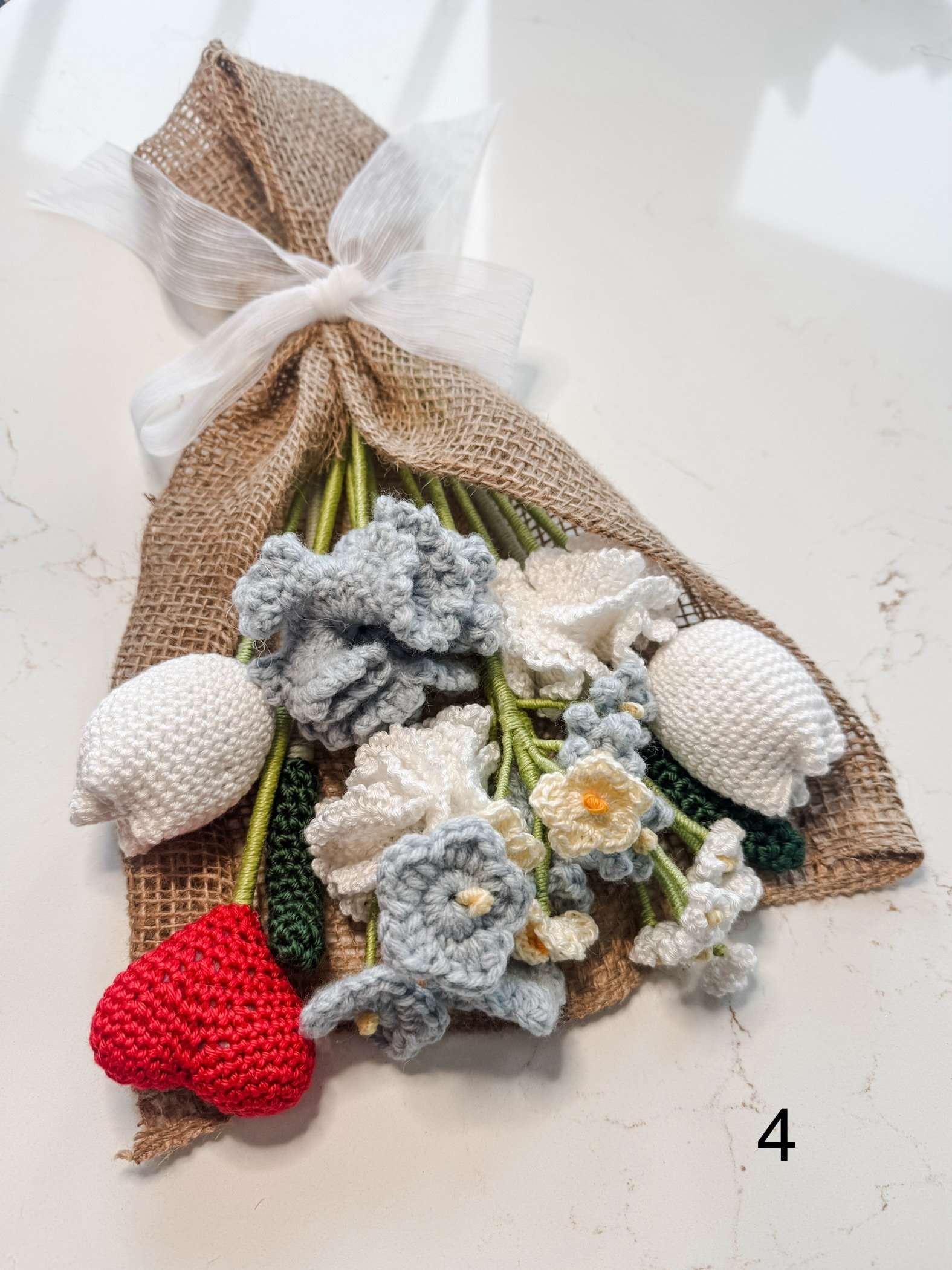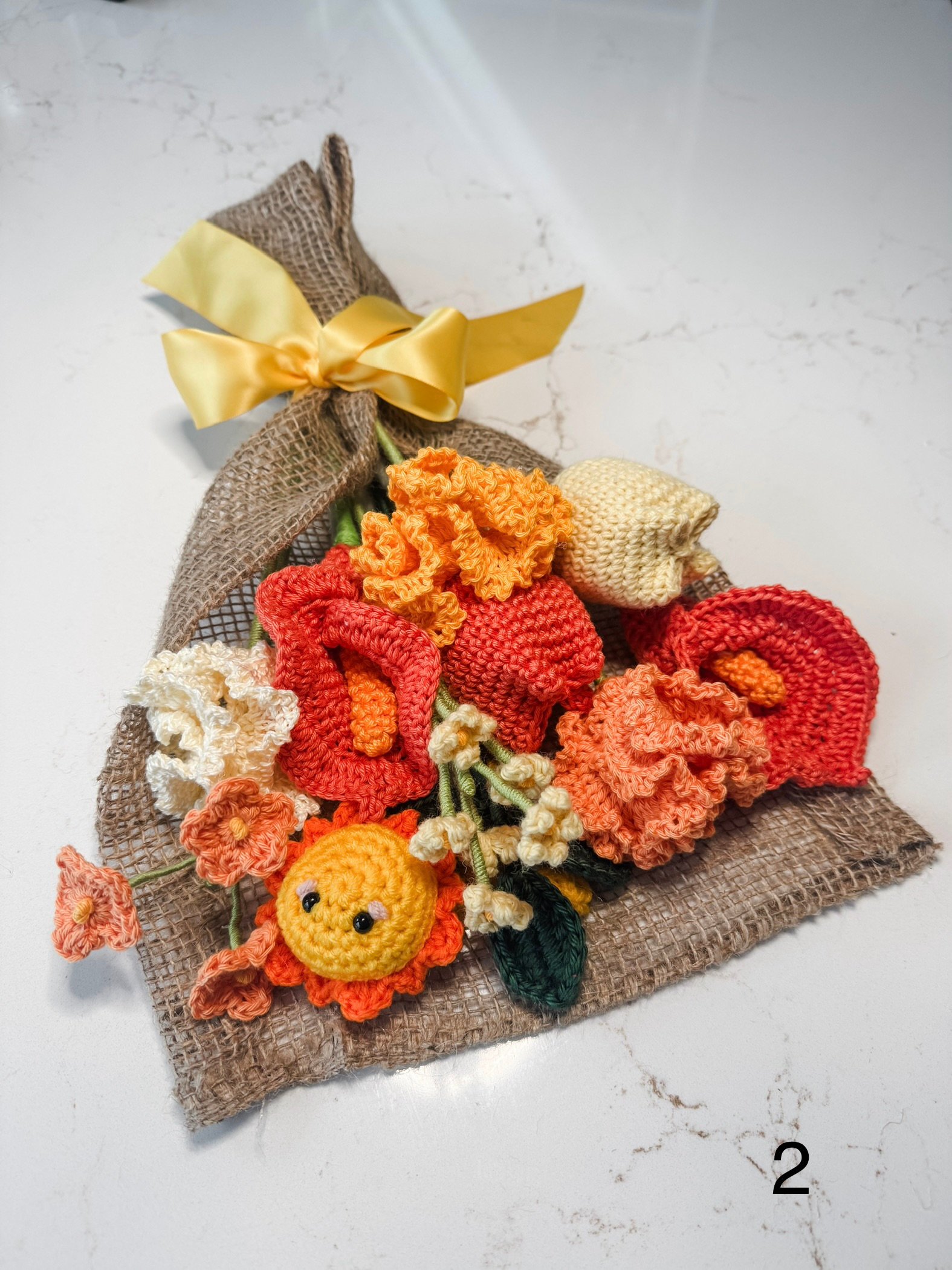 Handmade flower bouquet. There are 2 pictures of each bouquet in the listing, so you can see a close up.