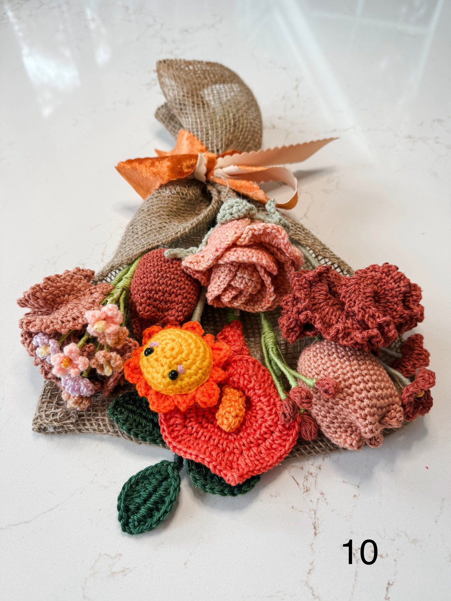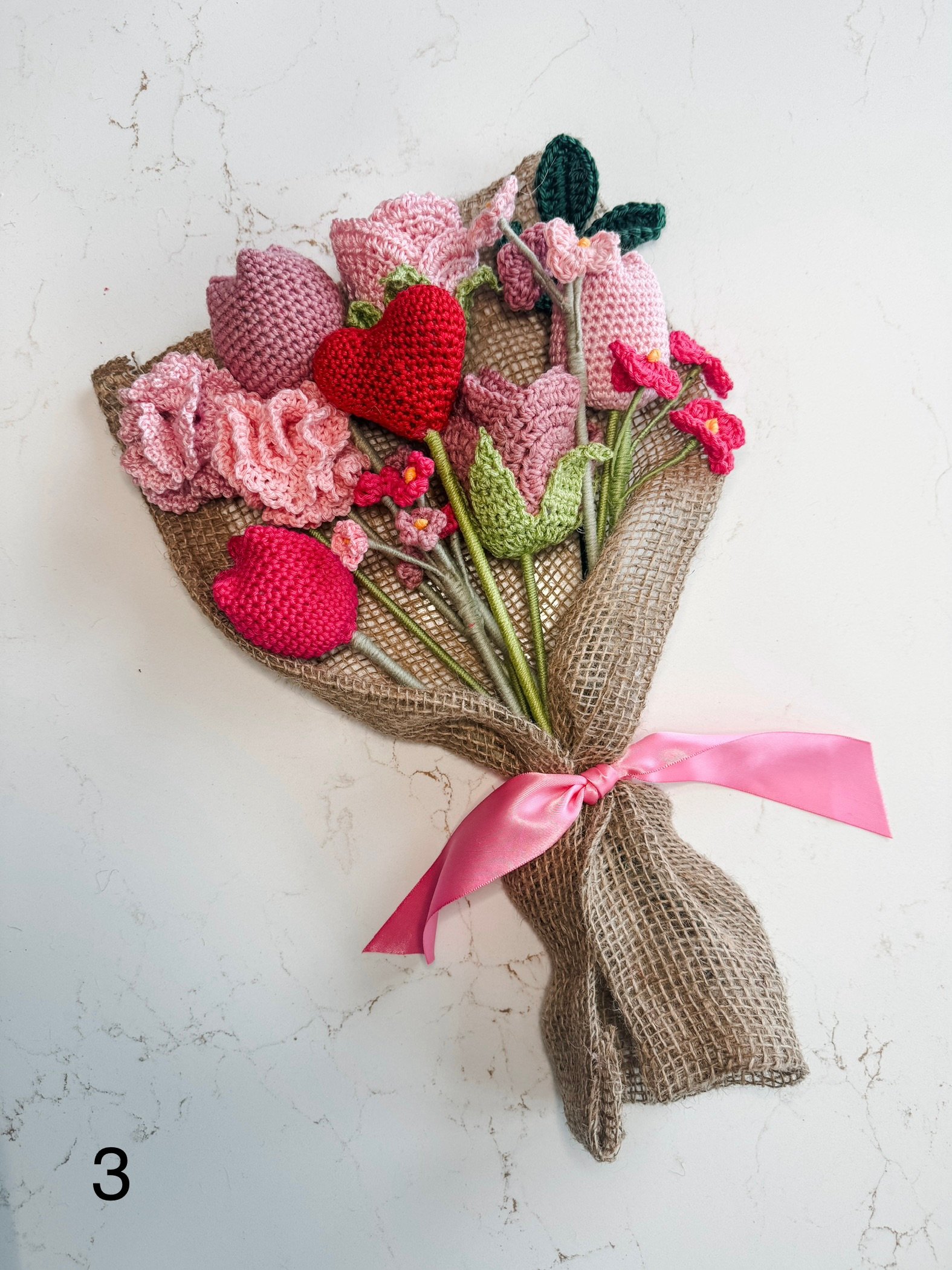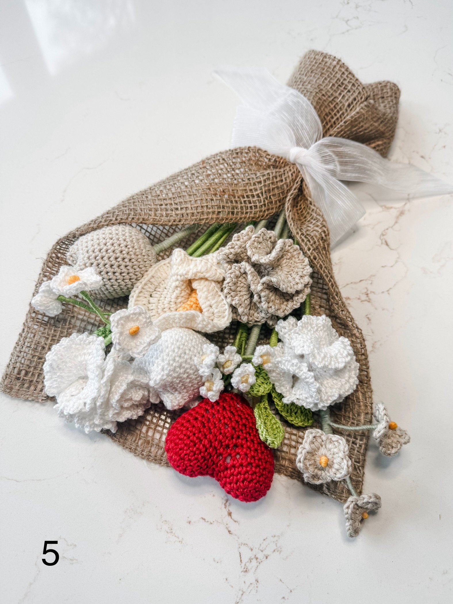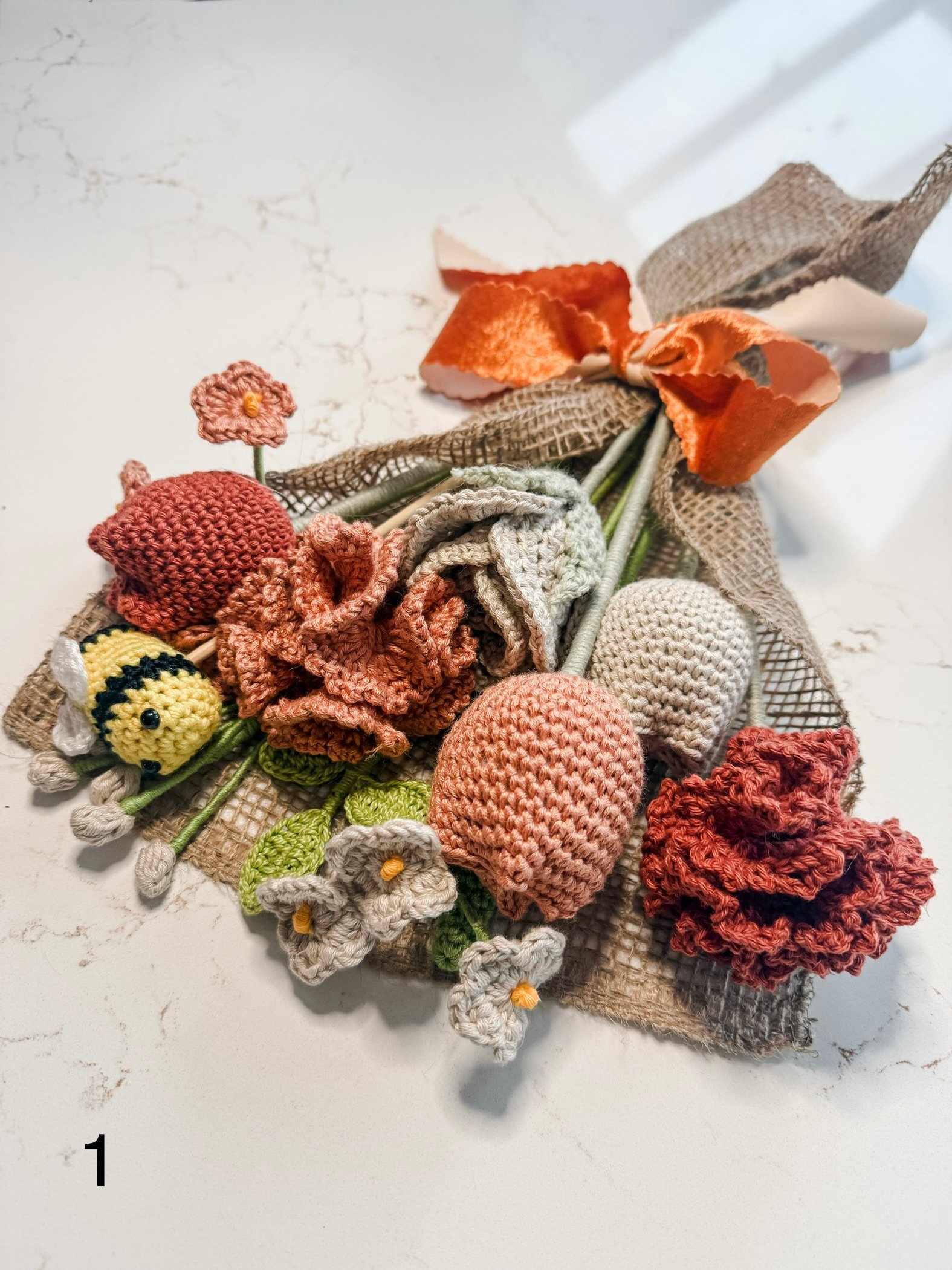 Handmade flower bouquet. There are 2 pictures of each bouquet in the listing, so you can see a close up.